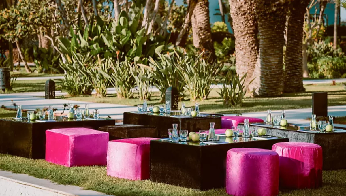 Les salons des Jardins Exotiques, des Oudayas, des Roses et du Chellah peuvent chacun accueillir 45 invités, dans un cadre lumineux relié à l’extérieur par de larges baies vitrées.